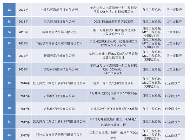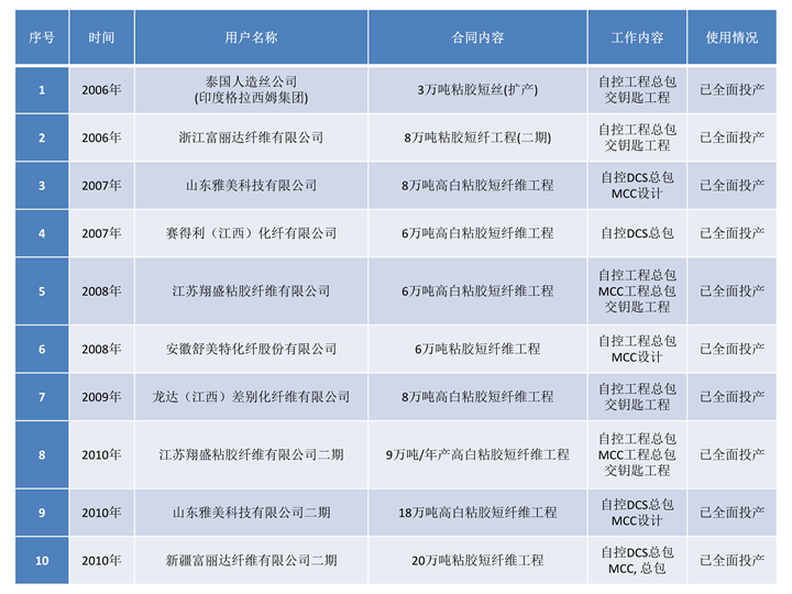 在國內近五年新增粘膠工廠建設中,江西泰德工程有限公司粘膠短纖維生產過程控制系統(tǒng),自控儀表總包,MCC總包,安裝,調試,開車均一次性投運成功,取得了良好的市場聲譽,在國內市場超出了50%的市場占有率,本著竭誠為用戶服務宗旨,確保工程項目穩(wěn)定、可靠實施。